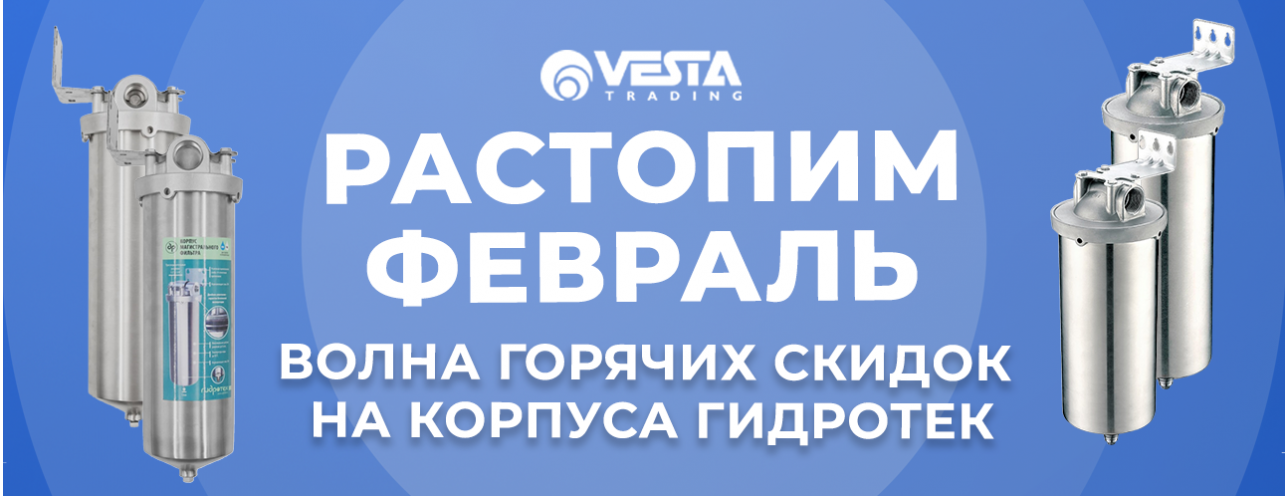Уважаемые покупатели! В розничной сети "Веста Трейдинг" вас ждут специальные условия на покупку корпусов магистральных фильтров для горячей воды из нержавеющей стали ГИДРОТЕК из подборки. Ждем вас в наших магазинах и на сайте www.vestatrade.ru..