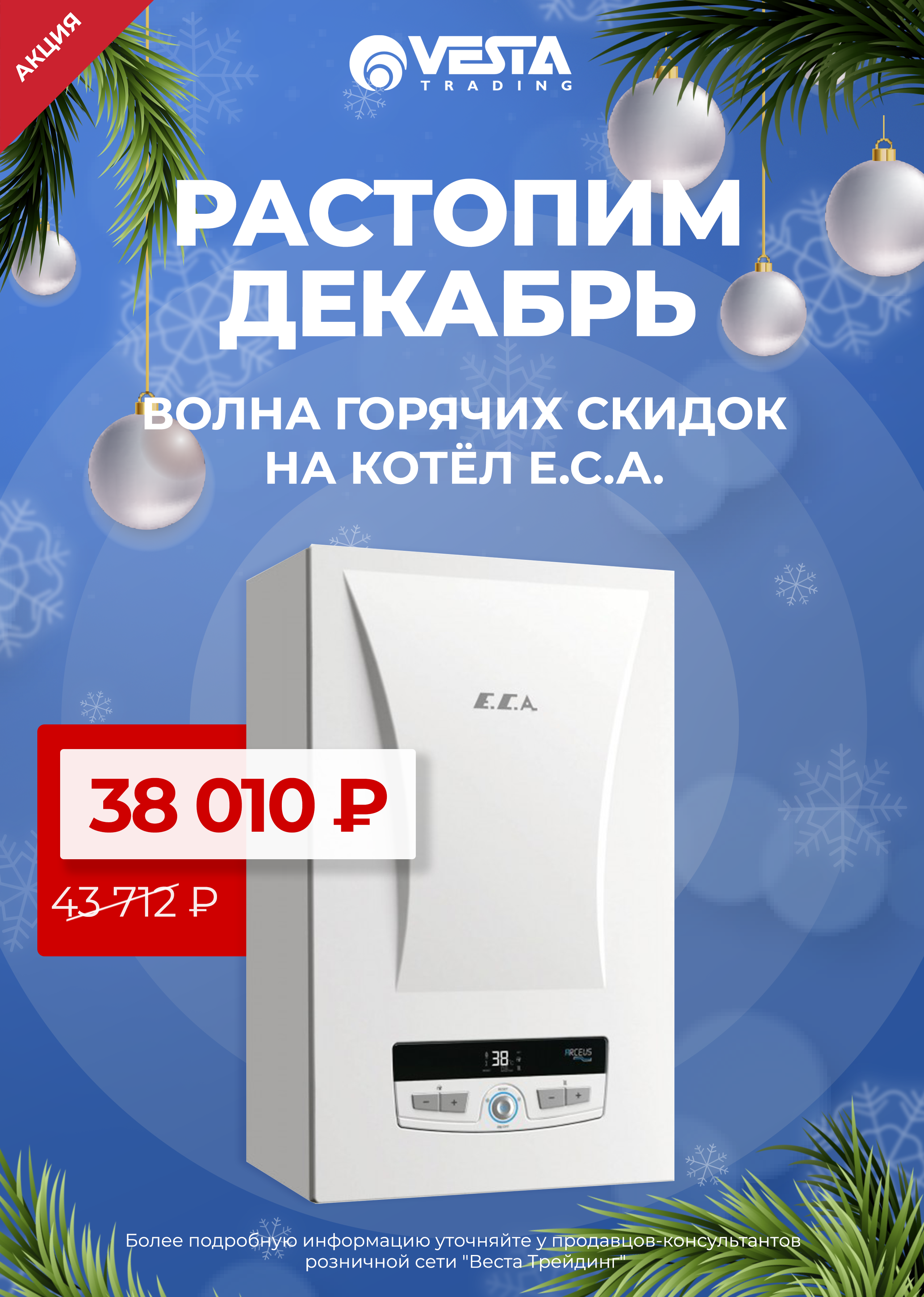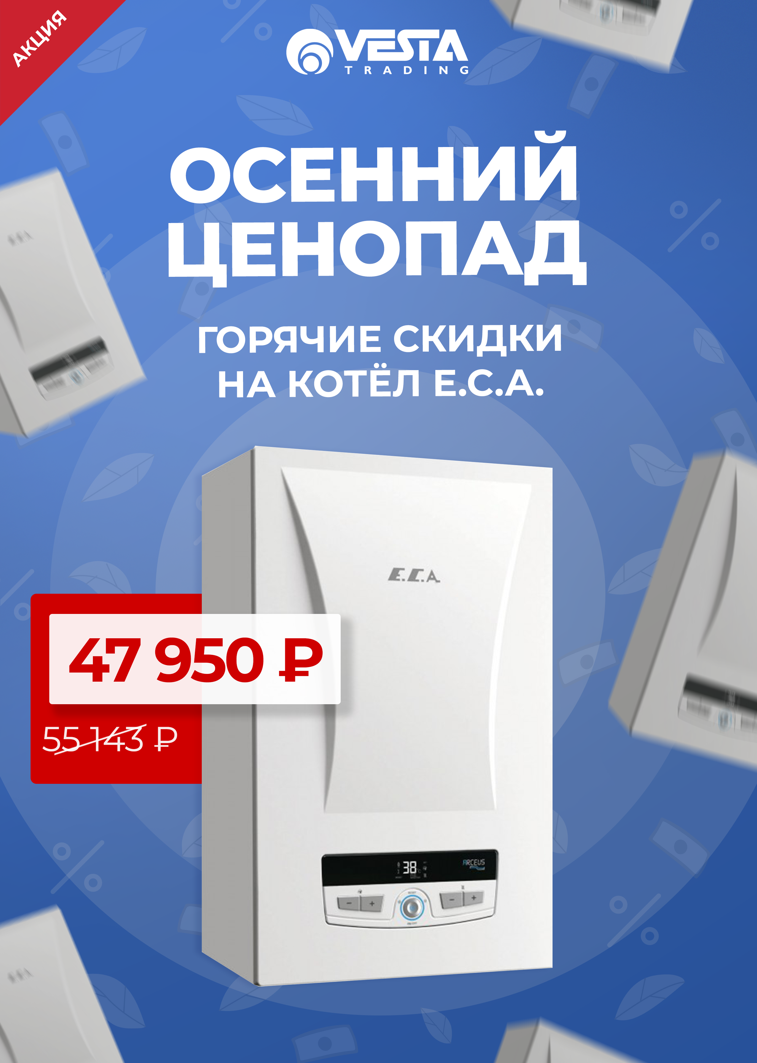 Уважаемые покупатели! В розничной сети "Веста Трейдинг" вас ждут специальные условия на покупку Котла электрического E.C.A. Arceus ST - 6 кВт (1 контур, 3х-ход. клапан с мотором, датчик бойлера). Ждем вас в наших магазинах и на сайте www.vestatrade.ru