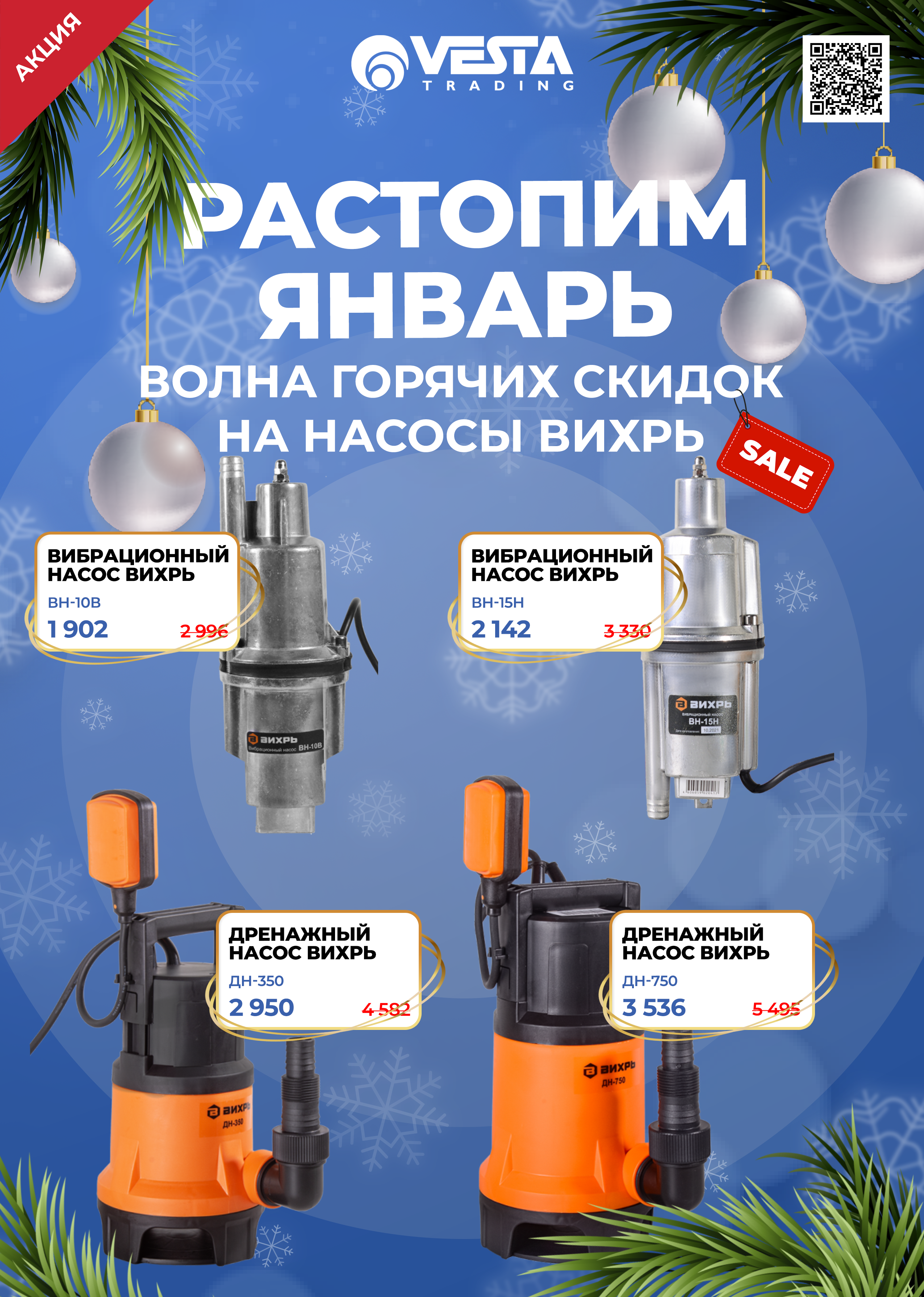Уважаемые покупатели, только в розничной сети «Веста Трейдинг» вас ждут специальные условия на покупку насосов «Вихрь». Ждем Вас в наших магазинах и на сайте www.vestatrade.ru/. Более подробную информацию по наличию и ценам уточняйте у продавцов-консультантов розничной сети «Веста Трейдинг».