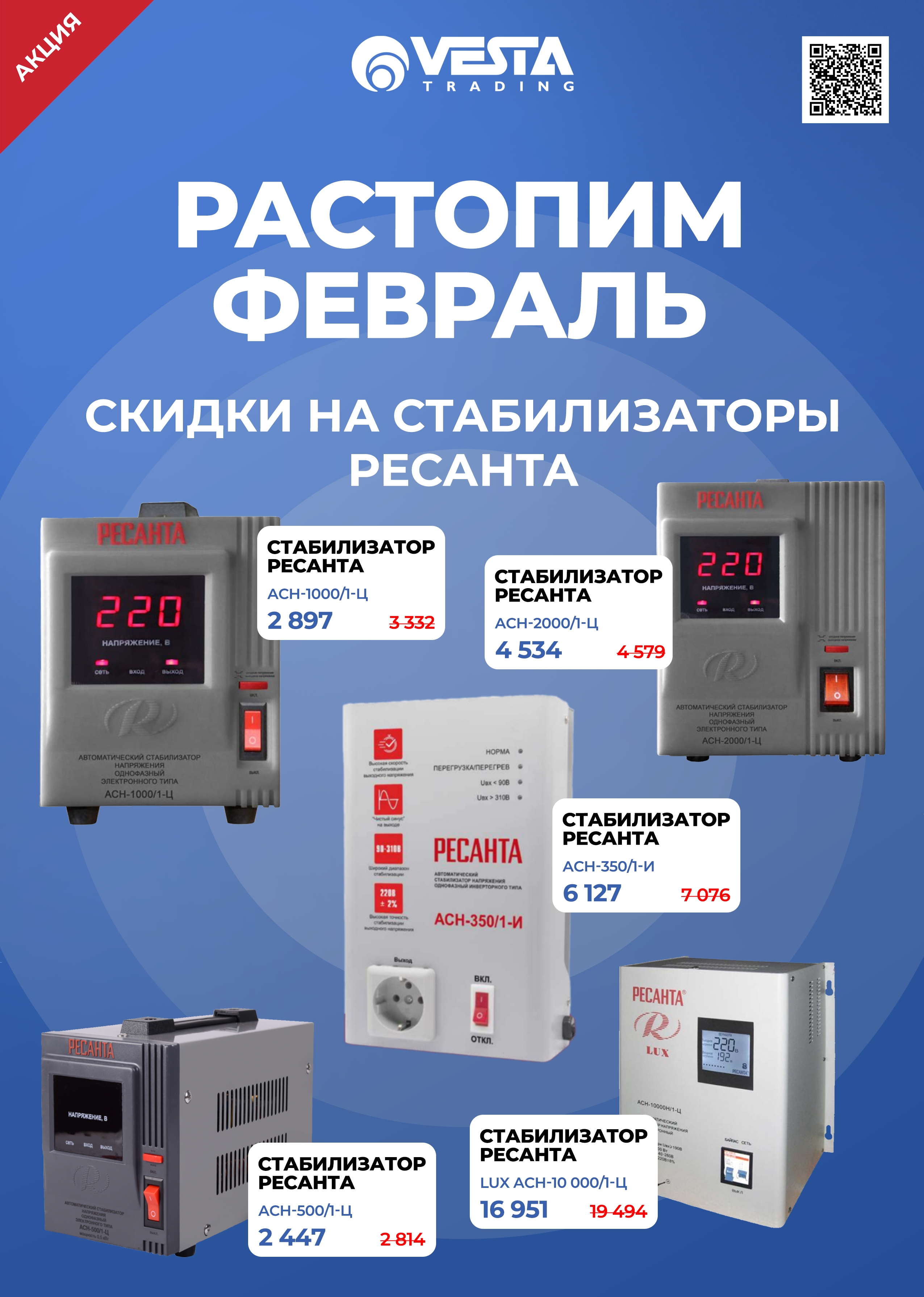 Уважаемые покупатели! В розничной сети "Веста Трейдинг" вас ждут специальные условия на покупку стабилизаторов РЕСАНТА из подборки. Ждем вас в наших магазинах и на сайте www.vestatrade.ru