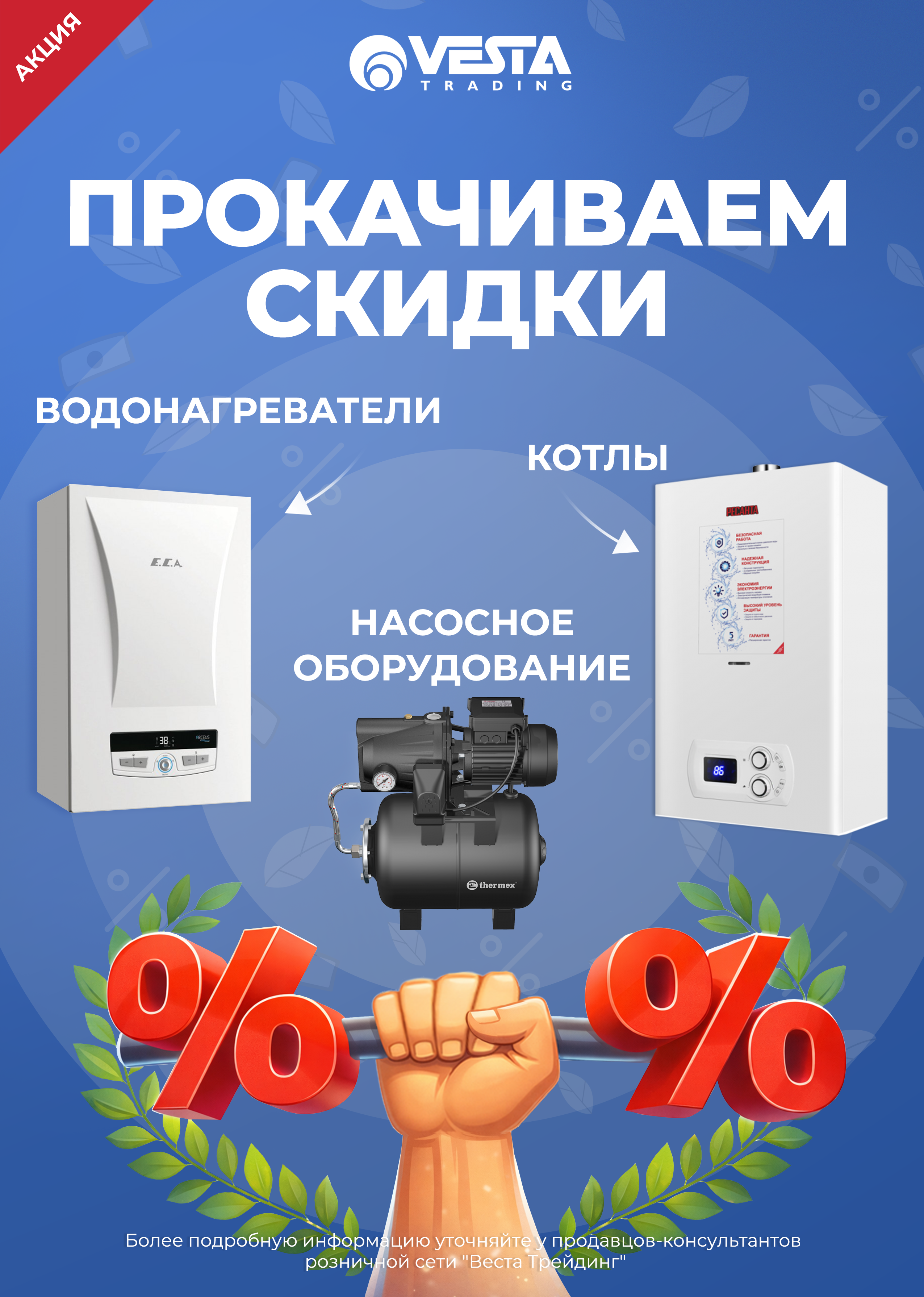 Уважаемые покупатели, в честь Дня защитника Отечества в розничной сети «Веста Трейдинг» вас ждут праздничные скидки до 30 %. Ждем вас в наших магазинах и на сайте www.vestatrade.ru/. Более подробную информацию по наличию и ценам уточняйте у продавцов-консультантов розничной сети «Веста Трейдинг».