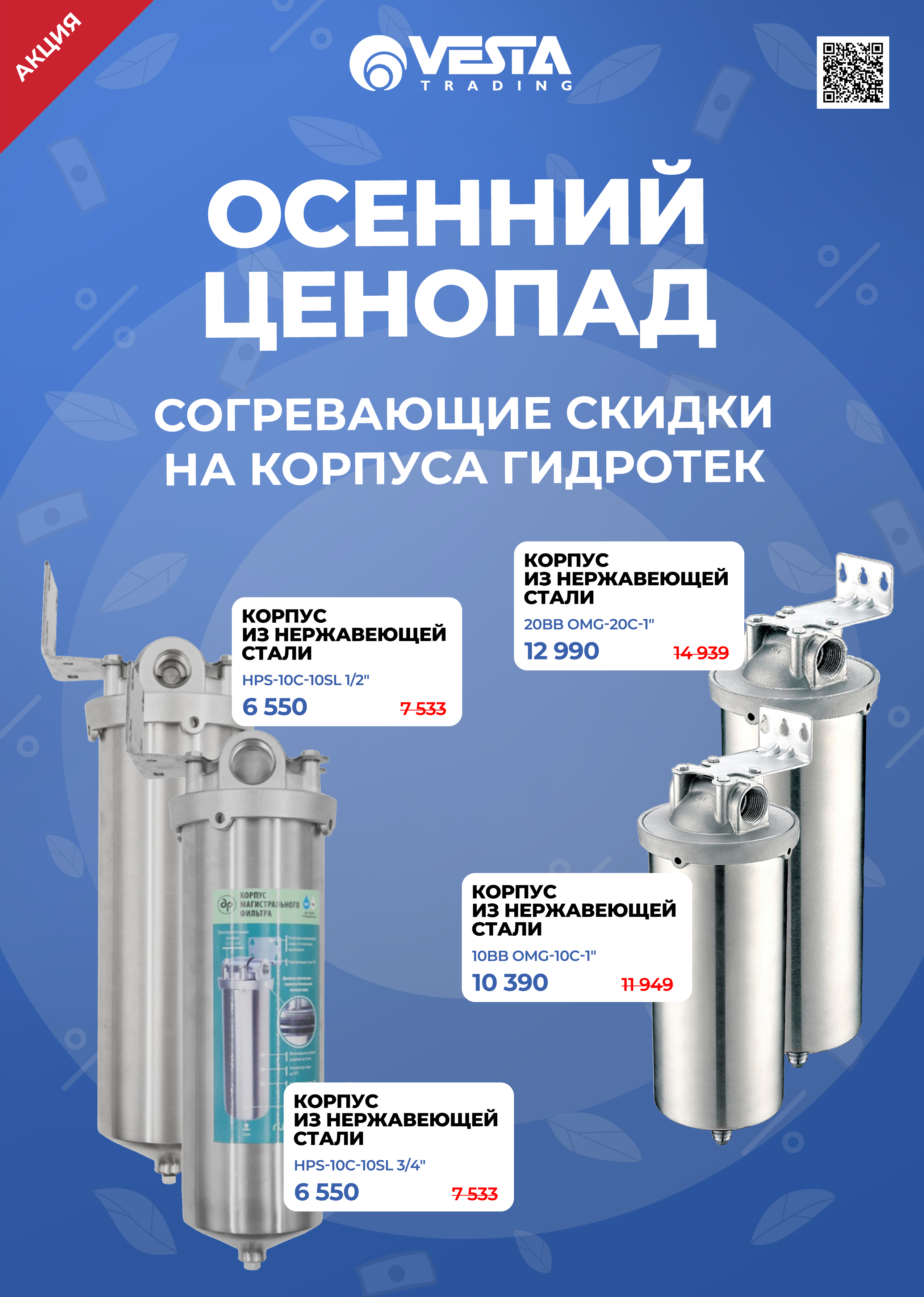 Уважаемые покупатели! С 01 по 30 ноября 2025 года в розничной сети "Веста Трейдинг" вас ждут специальные условия на покупку корпусов магистральных фильтров для горячей воды из нержавеющей стали ГИДРОТЕК из подборки. Ждем вас в наших магазинах и на сайте www.vestatrade.ru