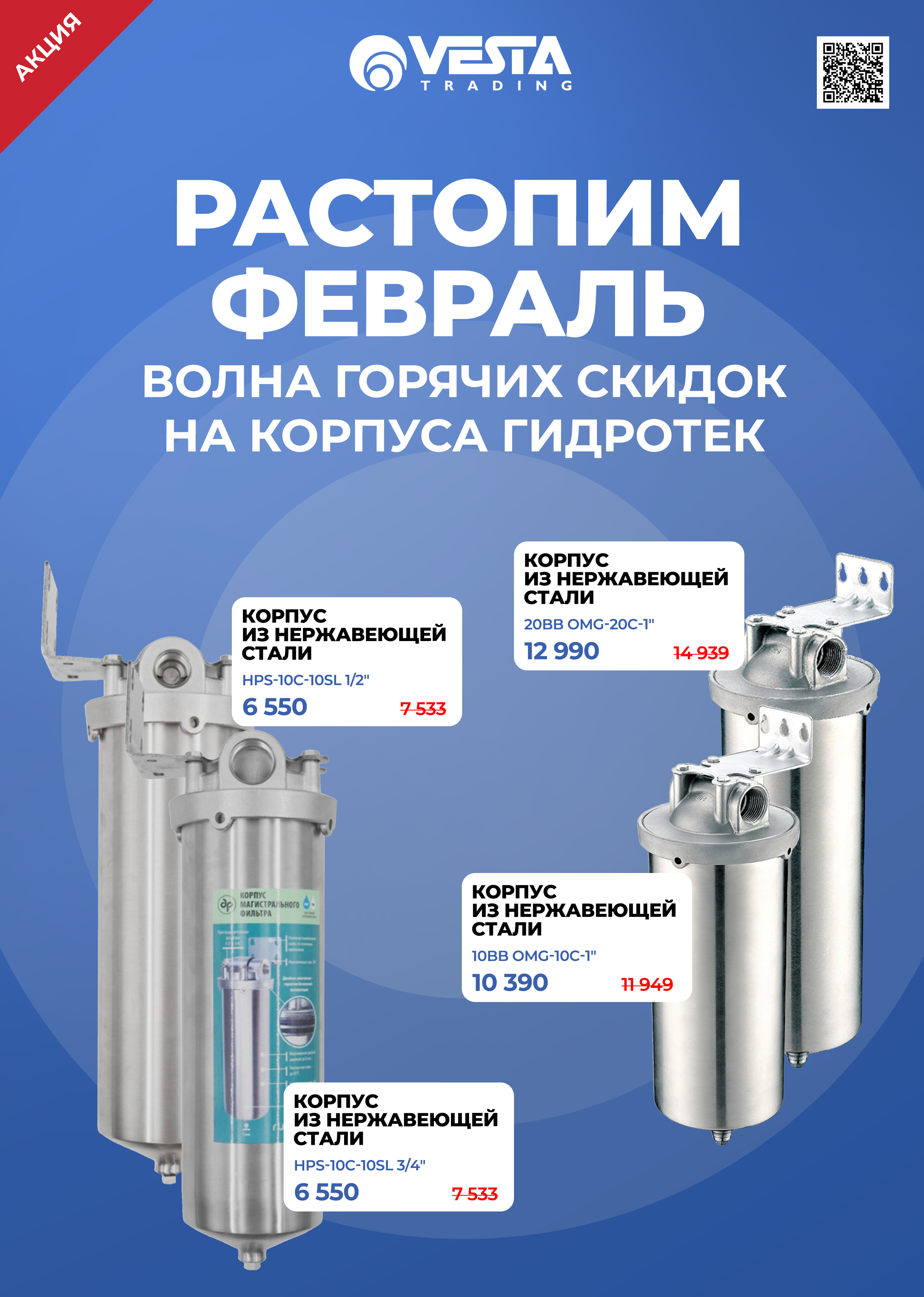 Уважаемые покупатели! В розничной сети "Веста Трейдинг" вас ждут специальные условия на покупку корпусов магистральных фильтров для горячей воды из нержавеющей стали ГИДРОТЕК из подборки. Ждем вас в наших магазинах и на сайте www.vestatrade.ru