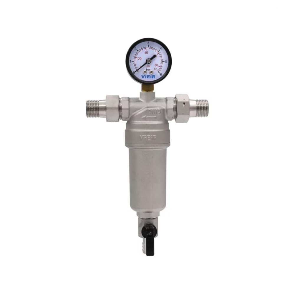 Фильтр самоочищающийся с манометром 1" для горячей воды VIEIR