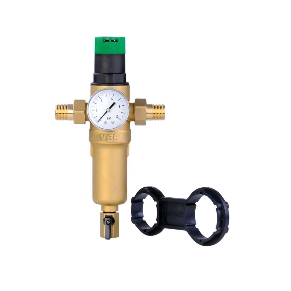 Фильтр самоочищающийся с редуктором давления и манометром 1/2" для горячей воды VIEIR