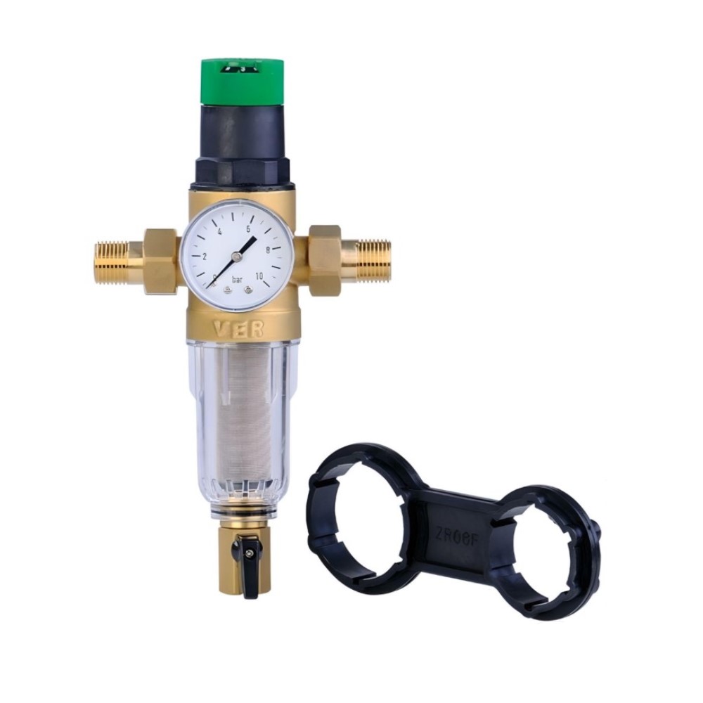 Фильтр самоочищающийся с редуктором давления и манометром 3/4" для холодной воды VIEIR
