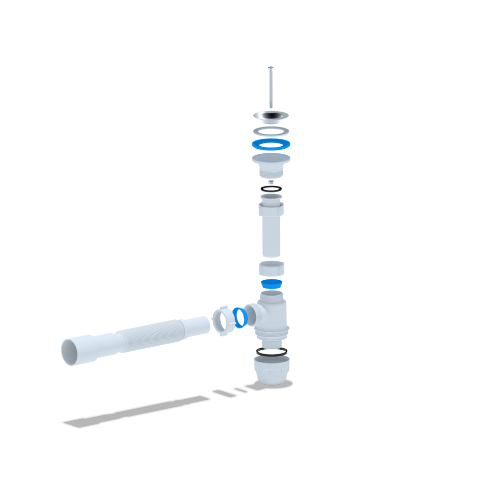 - ✓ Компактная конструкция позволяет устанавливать сифон даже в условиях ограниченного пространства под раковиной, что особенно актуально для небольших ванных комнат и кухонь.