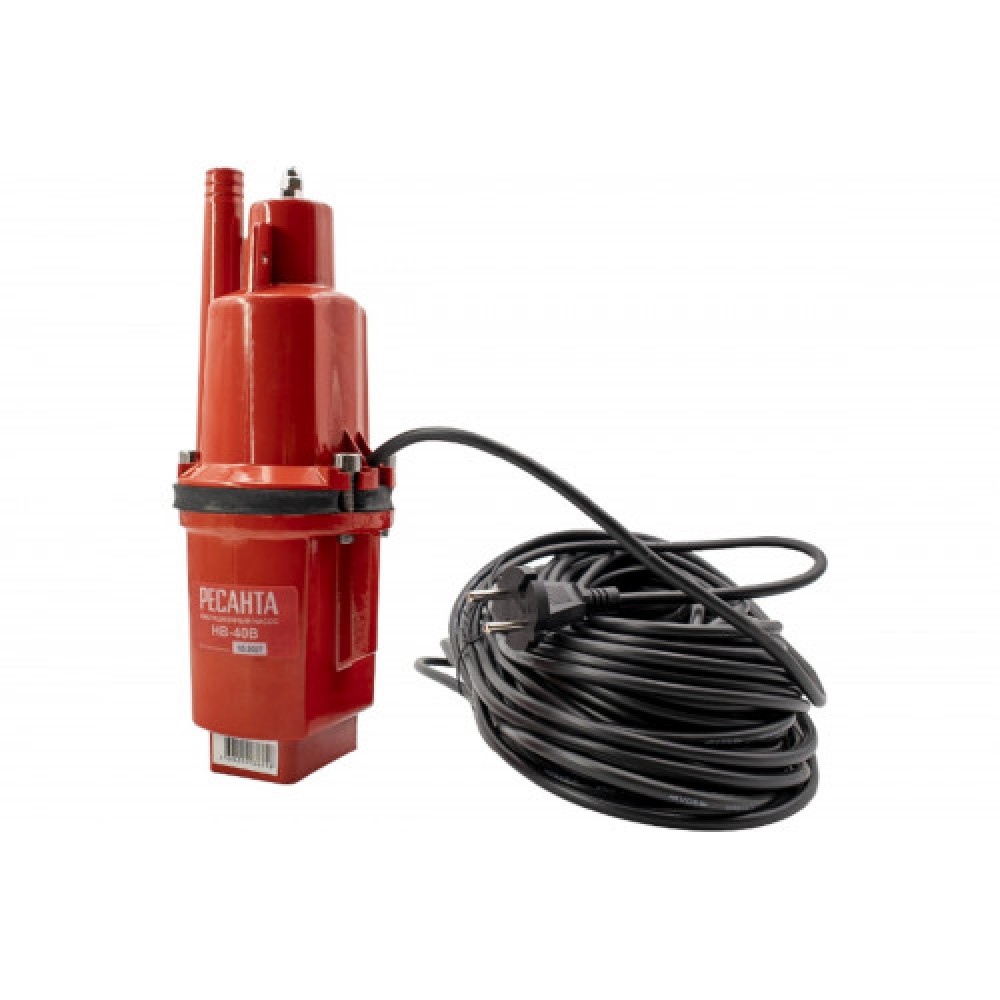 Вибрационный насос Ресанта НВ-40В полезной мощностью 300 Вт, максимальной высотой подъема воды 75 м и производительностью до 22 л/мин предназначен для подачи воды в бытовых условиях из скважин (внутренний диаметр от 110 мм и более), а также из колодцев, резервуаров и открытых водоемов для полива и хозяйственных задач.