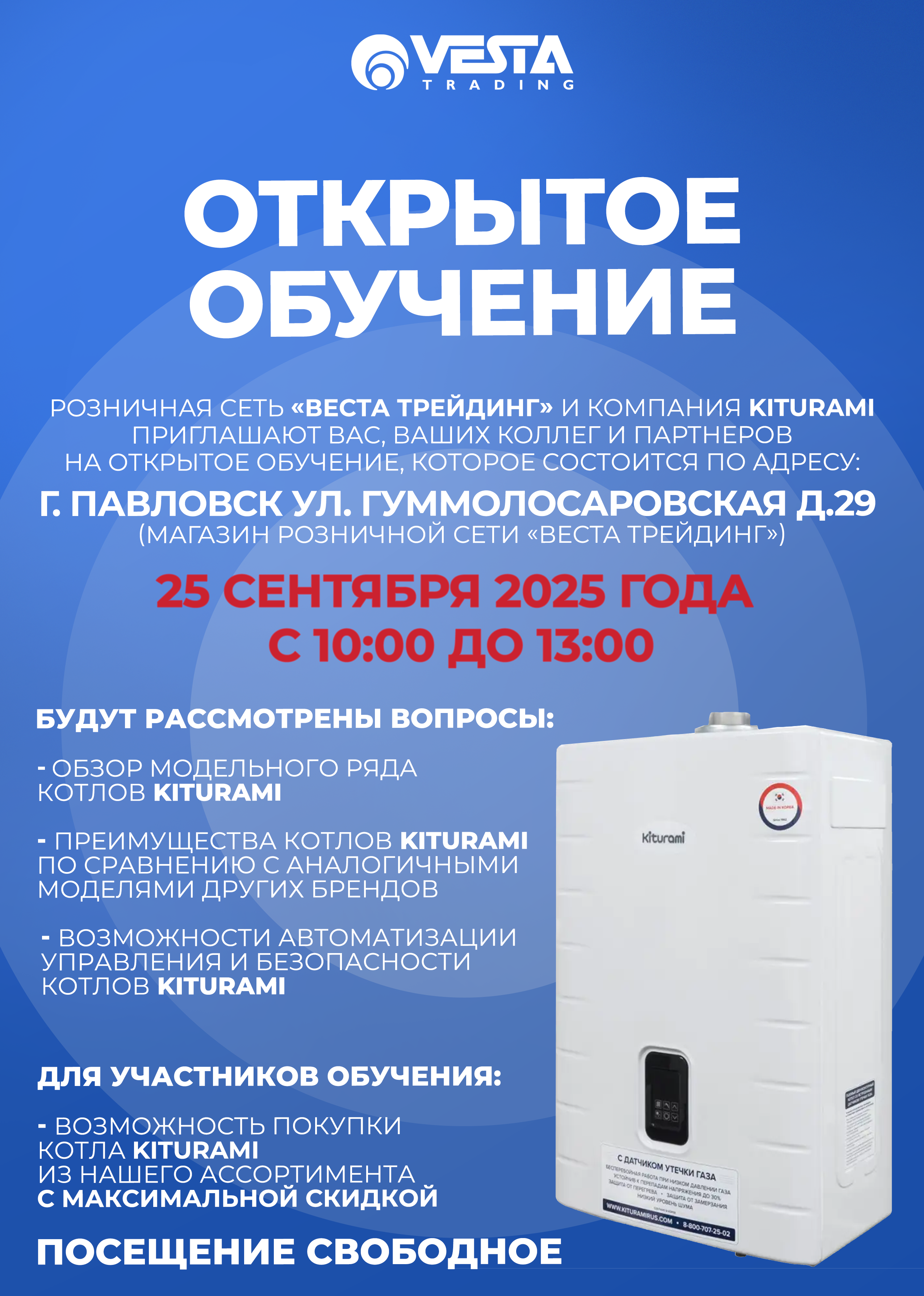 Каждому участнику обучения будет предоставлена возможность покупки котла KITURAMI из нашего ассортимента с максимальной скидкой!