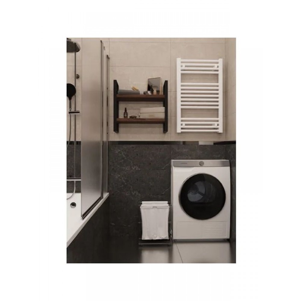 Электрический полотенцесушитель выполнен в современном дизайне и представлен в белом цвете. Устройство предназначено для быстрого и равномерного прогрева ванной комнаты, сушки полотенец и белья. Подходит для любых типов помещений, включая квартиры и частные дома.