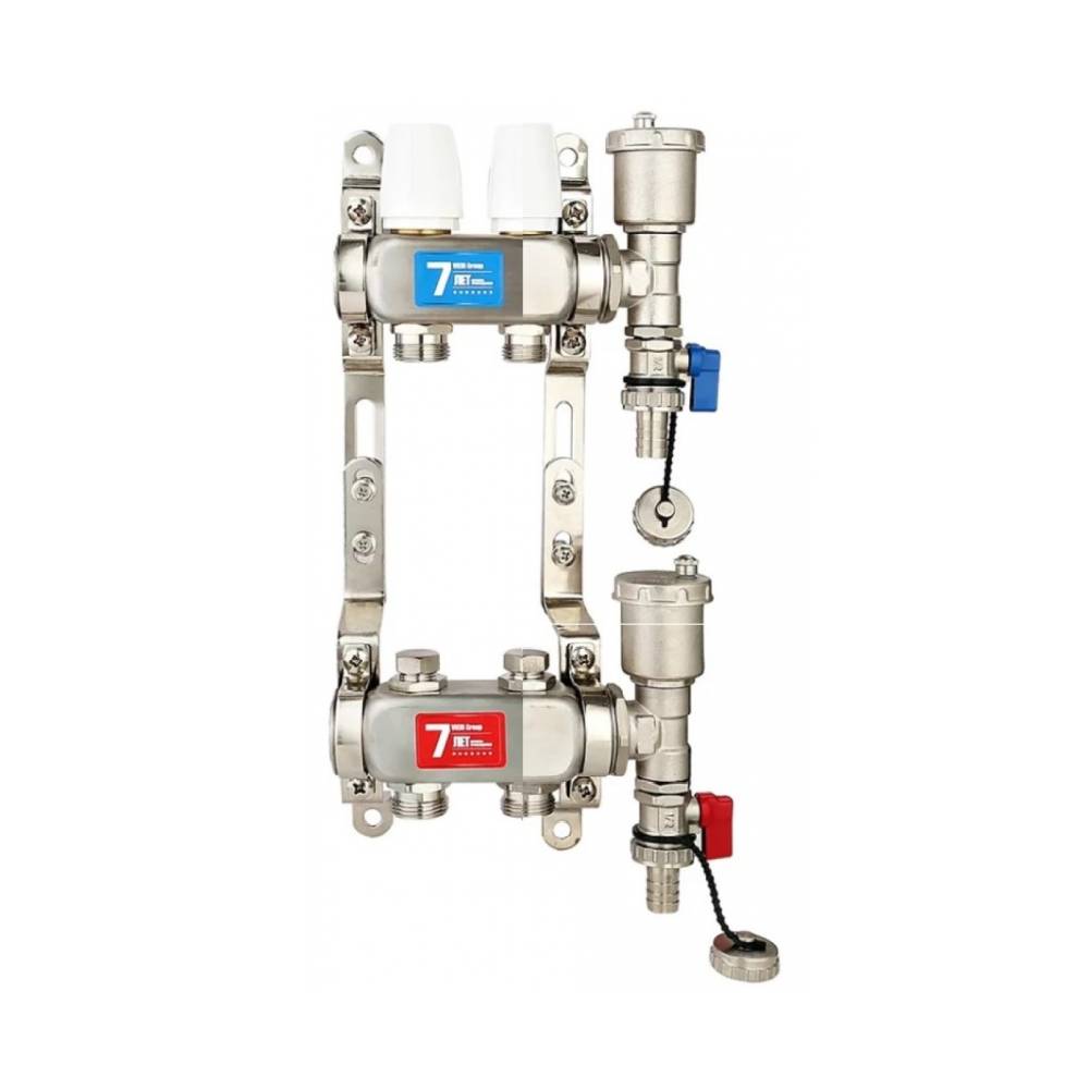 - ✓ Двухконтурная коллекторная сборка 1" с выходами под евроконус 3/4" (НР) для небольших систем или отдельных зон отопления.