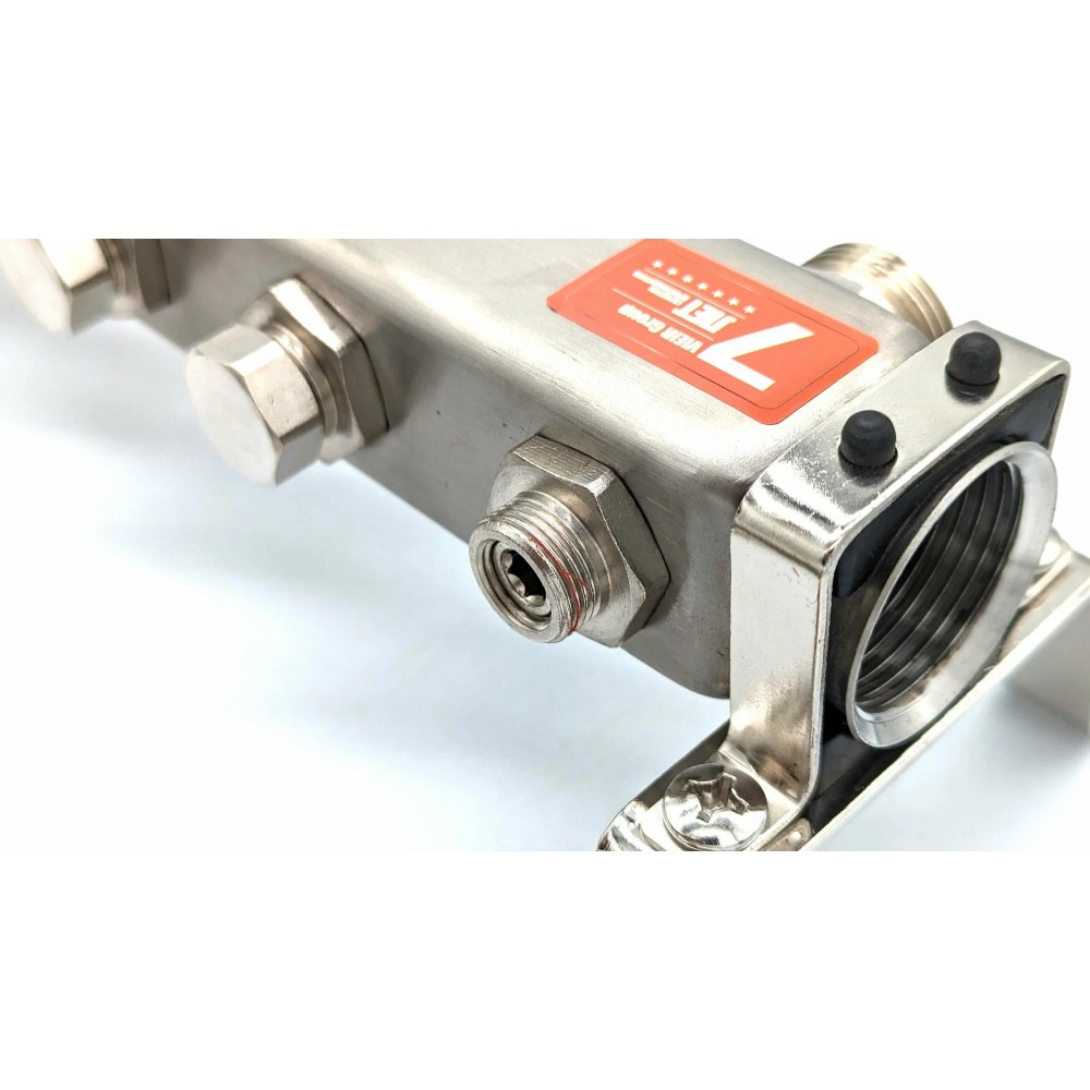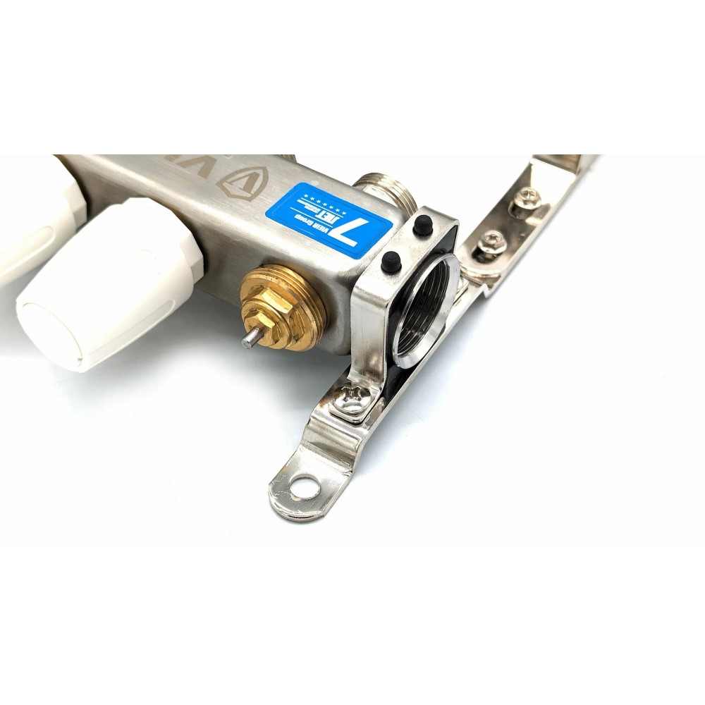 Коллекторная группа VIEIR VR115-02A 1"x3/4", 2 выхода — компактный распределительный коллектор из нержавеющей стали для подключения двух контуров отопления или «тёплого пола» без расходомеров и без шаровых кранов.