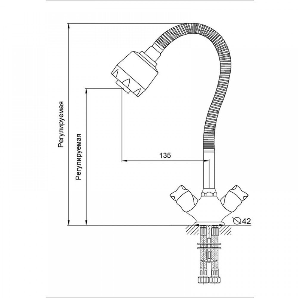 - ✓ Гибкий излив позволяет произвольно менять высоту и направление струи