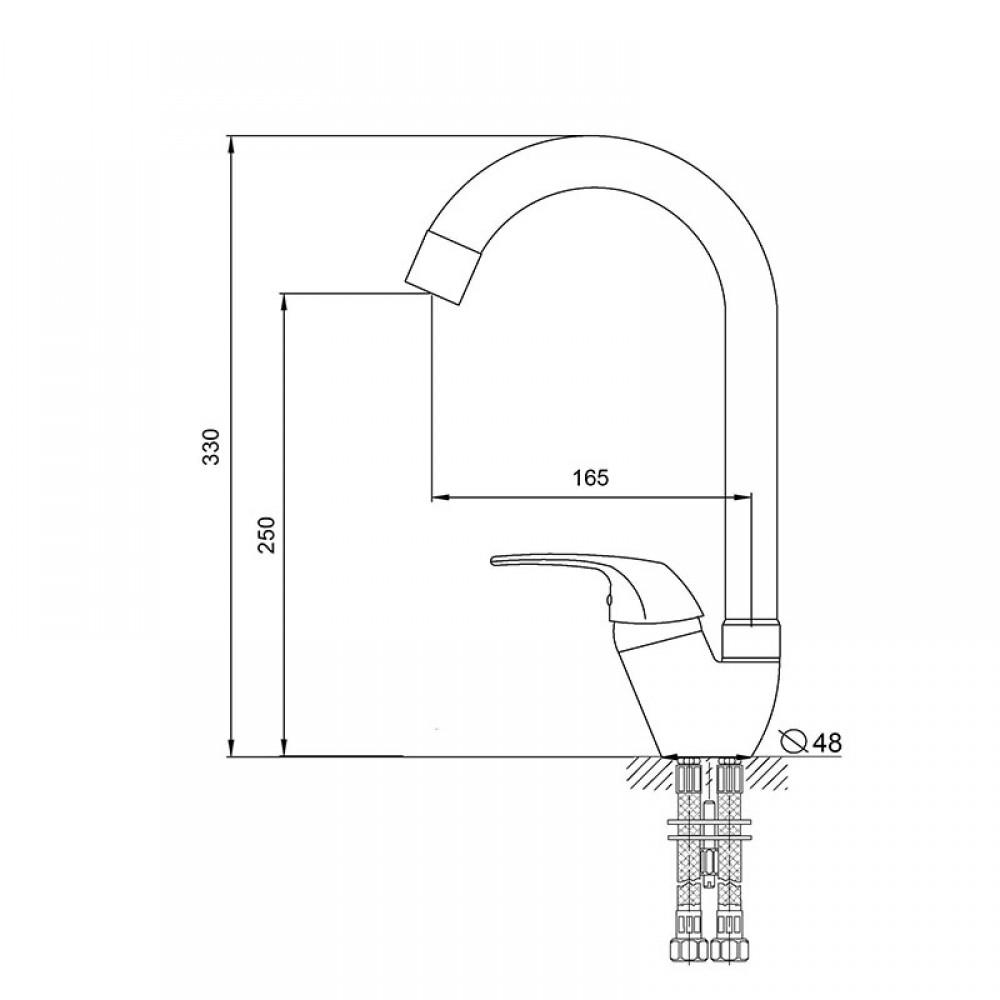 - ✓ Тип излива: высокий, поворотный (R-образный)