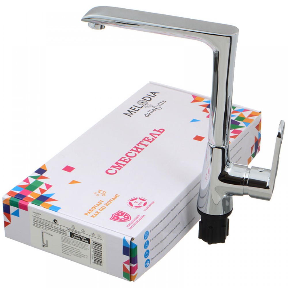 Смеситель для кухонной мойки MELODIA Heavy Metal MDV35615 — это стильная водоразборная арматура с выразительным высоким Г-образным изливом. Прямоугольная геометрия гусака не только подчеркивает современный дизайн устройства, но и значительно расширяет полезное пространство над раковиной, позволяя легко мыть самую объемную посуду.
