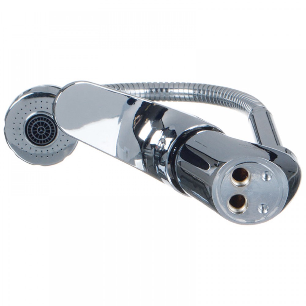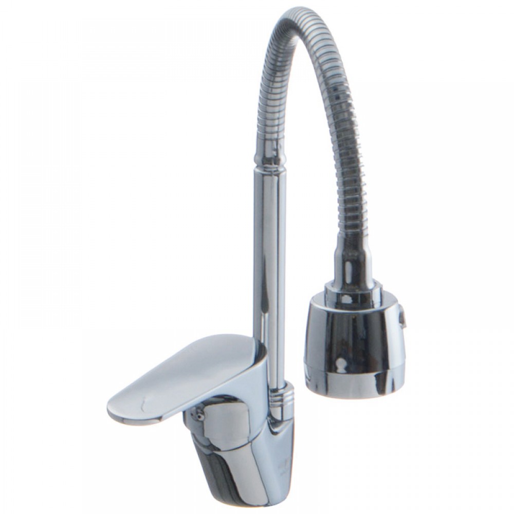 Это конструкция, в которой центральная часть носика представляет собой армированный шланг. Он может гнуться и фиксироваться в нужном положении для удобства мытья.
