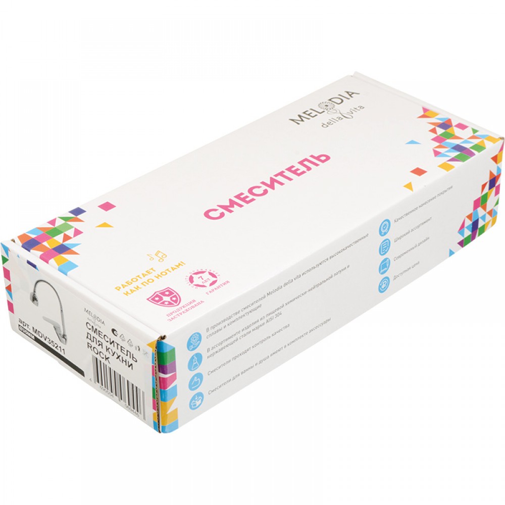 Однорычажный кухонный смеситель MELODIA Rock MDV35211 оборудован гибким изливом для удобного мытья посуды и продуктов. Кран для кухонной мойки с картриджем 35 мм выполнен в современном стиле и рассчитан на комфортное использование благодаря настраиваемой высоте и углу подачи струи.