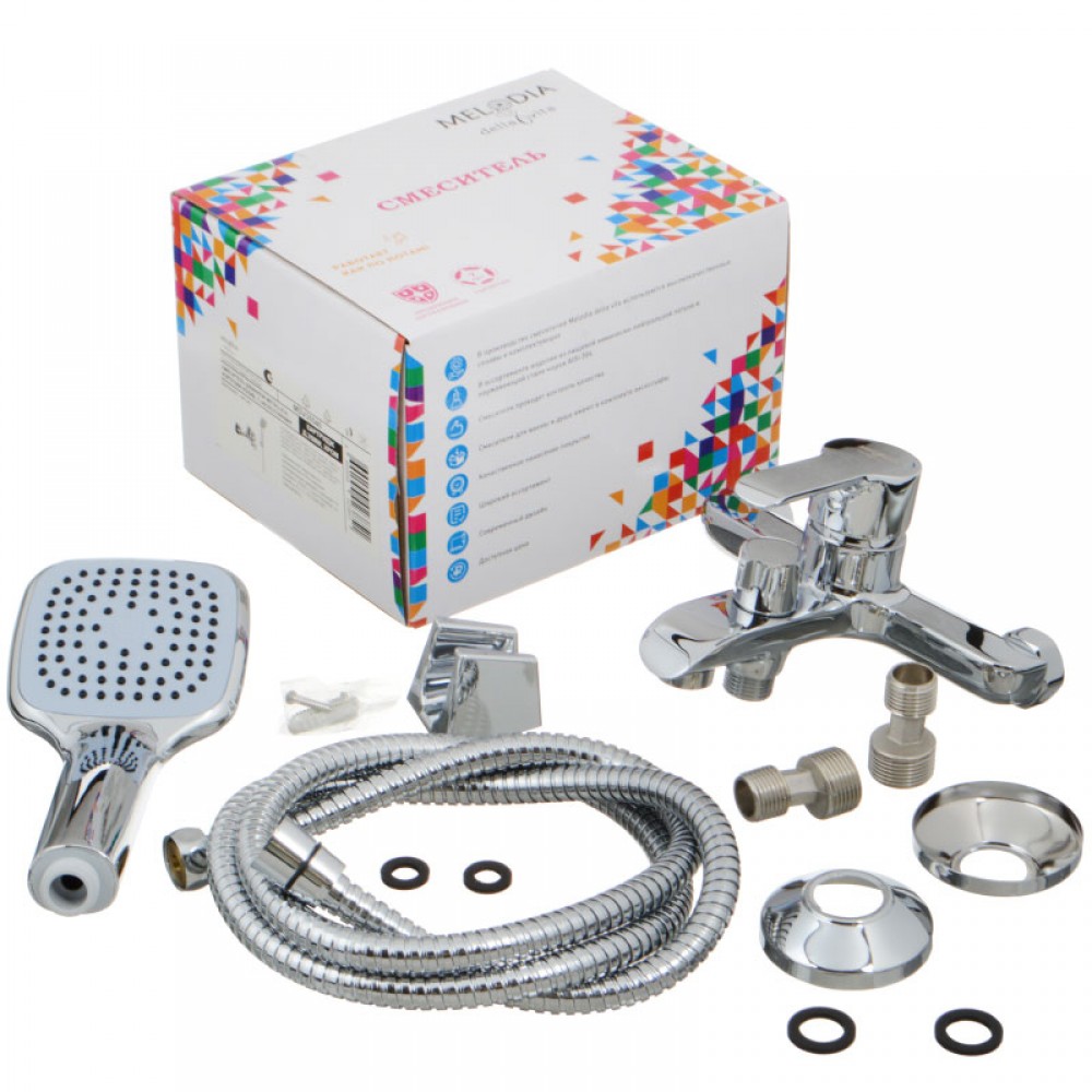 Внешняя поверхность покрыта глянцевым хромом, придающим устройству эстетичный внешний вид. В комплект входит ручная лейка с одним режимом струи, а настенное подключение выполняется через штатные эксцентрики.