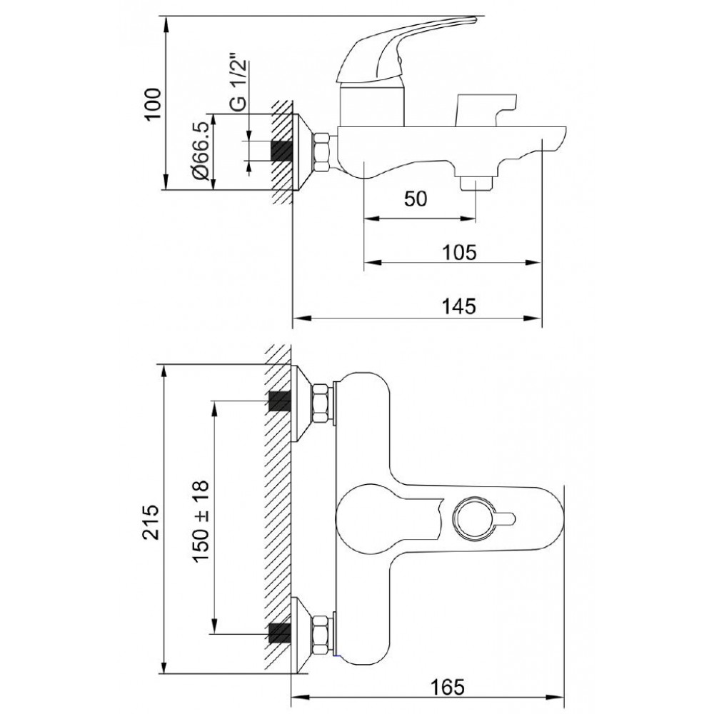- ✓ Межцентровое расстояние: 150 мм