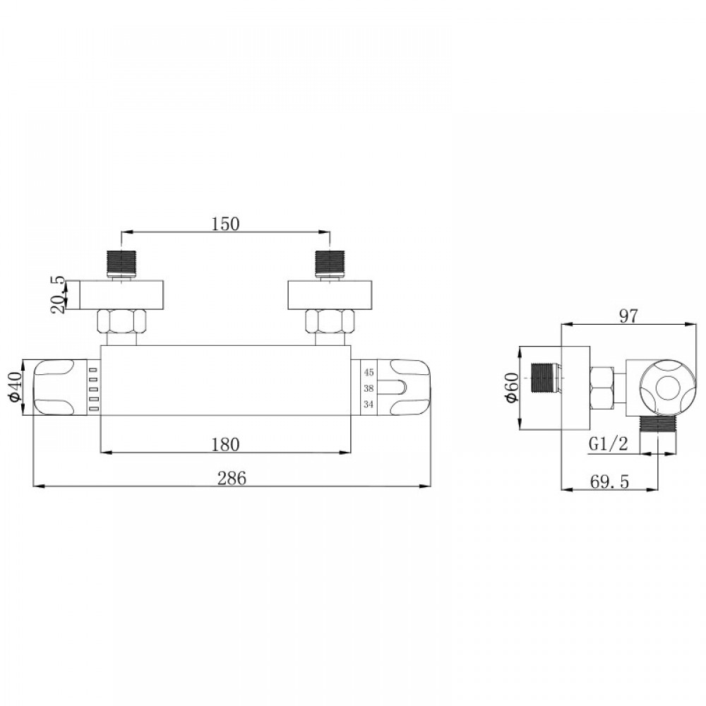 - ✓ Важно: строгая привязка сторон горячей и холодной воды для корректной работы термостата