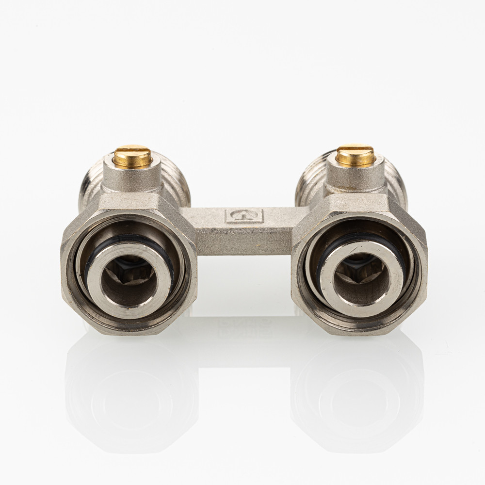 (VT.345.NE) Н-образный клапан, предназначенный для нижнего подключения отопительных приборов при расположении присоединительных патрубков с межосевым расстоянием 50 мм.