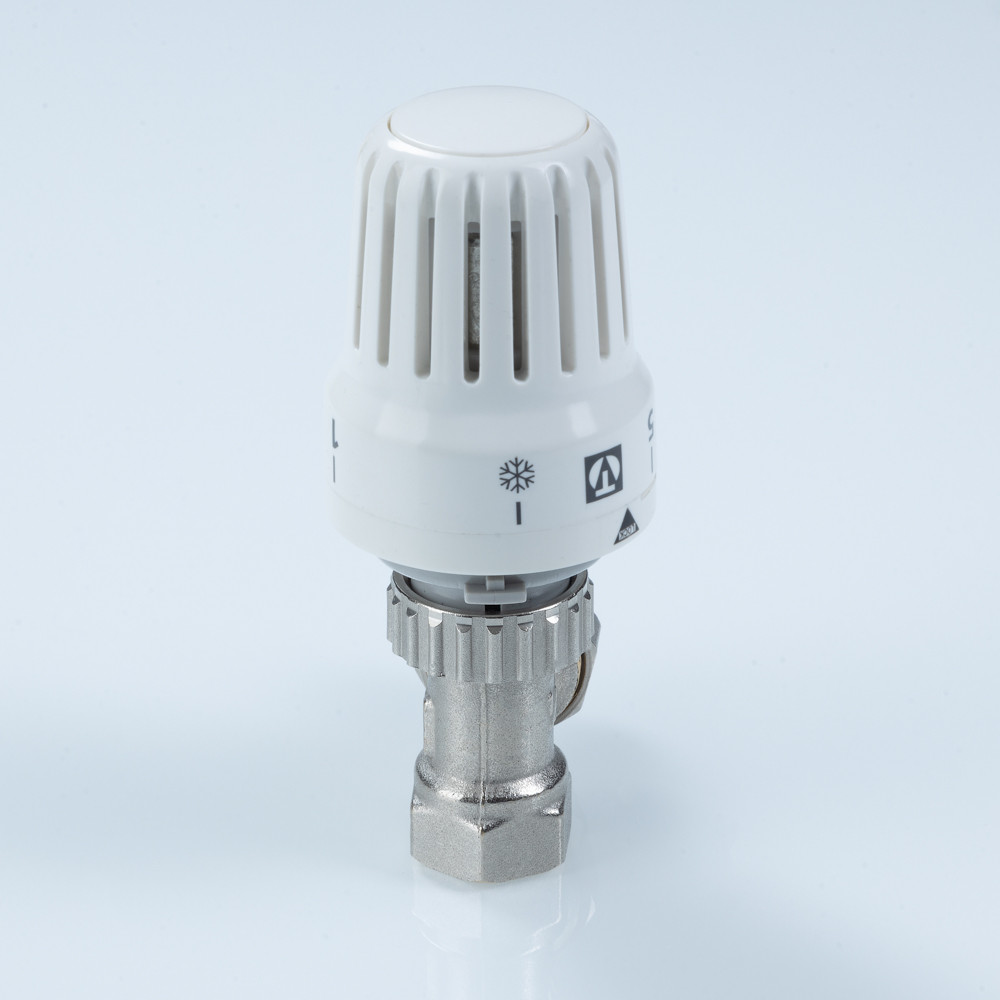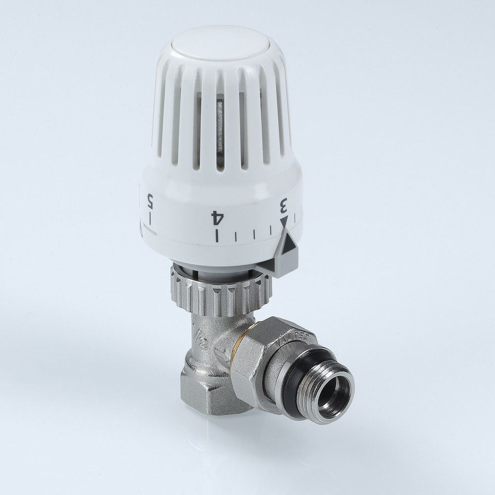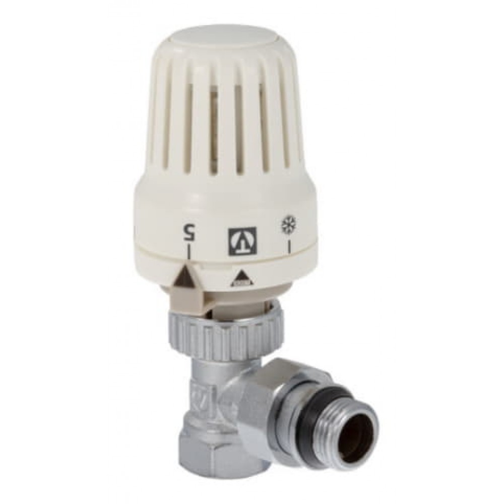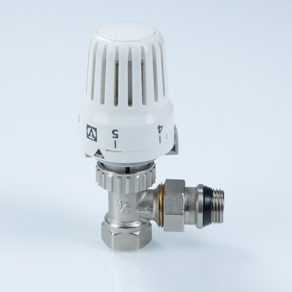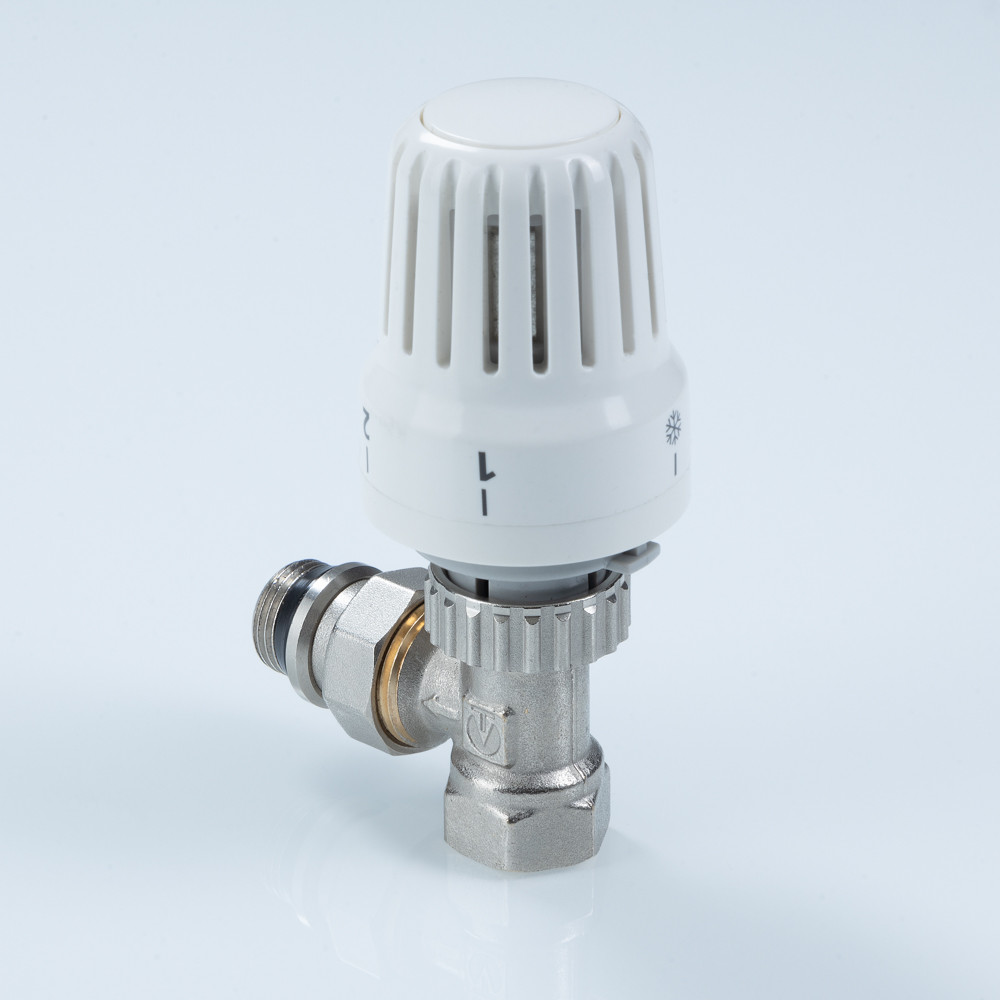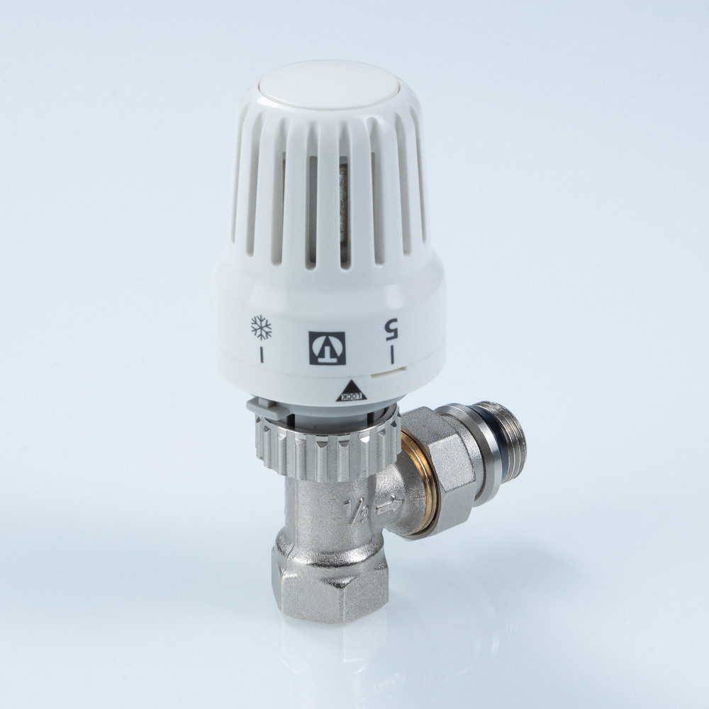 Комплект углового термостатического клапана (радиаторный терморегулятор). Автоматически поддерживает температуру воздуха (точность – до 1 °С). Максимальная рабочая температура – 110 °С; номинальное давление – 10 бар. Соответствует требованиям ГОСТ 30815, EN215 (часть 1). Ремонтопригоден. Применим в зданиях любого назначения. Наличие полусгона обеспечивает установку, демонтаж термостатического клапана без разборки трубопровода. Присоединительная резьба радиаторного терморегулятора – внутренняя/наружная. Средний полный строк службы – 30 лет.